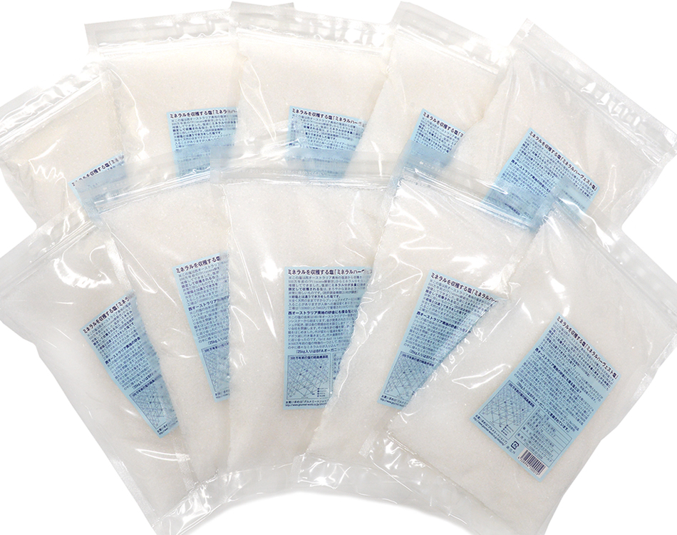 ![]() ミネラルハーヴェスト塩は粒の大きさで3種類あります。それぞれの用途によってお使い下さい。 |