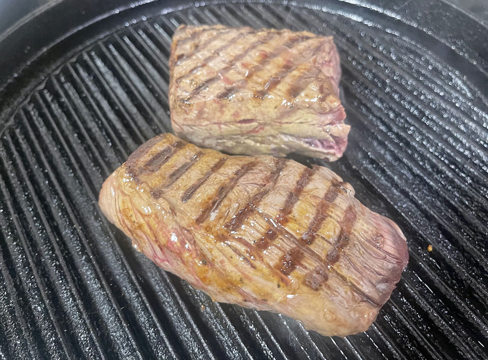 焼けてから少し肉汁を落ち着けてから肉繊維に平行にカットするとジューシーなおいしさが楽しめます。