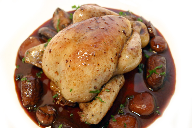 ピジョン(鳩)を赤ワインベースのソースで煮込みました。山で採れる茸を併せてみました。ピジョンの赤ワイン煮/Photo & Recipe by Yoko