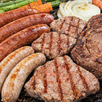 バーベキューセット約1.2kg【牛ハラミ・和豚もちぶたスペアリブ・ぐるぐるスモークソーセージ・日光HIMITSU豚熟成ベーコンで たっぷり4人前 !グリルでもホットプレートでも愉しめます!】 |
