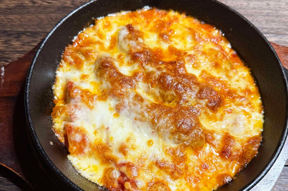 トマトソースで煮込み、たっぷりのチーズをのせて焼いてご馳走感たっぷり♪
