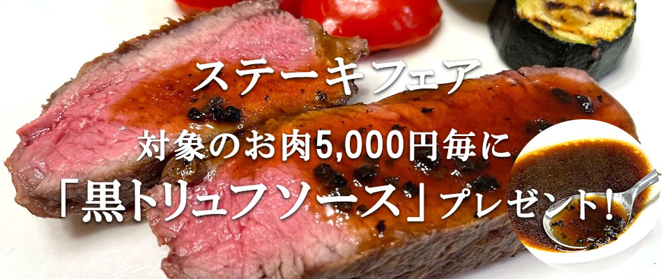 本格派フォンドボー仕立ての黒トリュフソース」をプレゼント♪ぜひ、この機会に美味しいステーキソースでお召し上がりください。※ステーキの合計金額5000円ごとに1パックプレゼントです