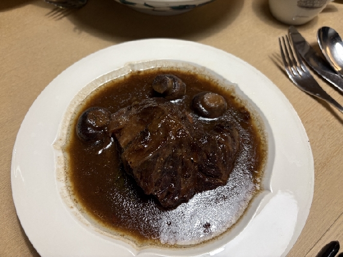 大きめにカットしたほほ肉をメルローで6時間煮込んで、美味しくいただきました。