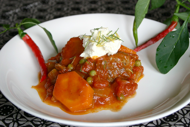 たっぷりのラムショルダー肉のシチューに、レモンサワークリームをのせて!レモンの香りがす~っとして、さっぱりした味わいです。