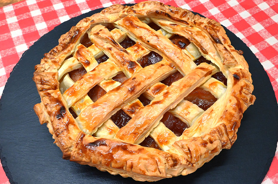 割れたり歪んでいるパイシートも解凍すれば繋いで延ばすことが出来ます。直径20cmのアップルパイも作れました。