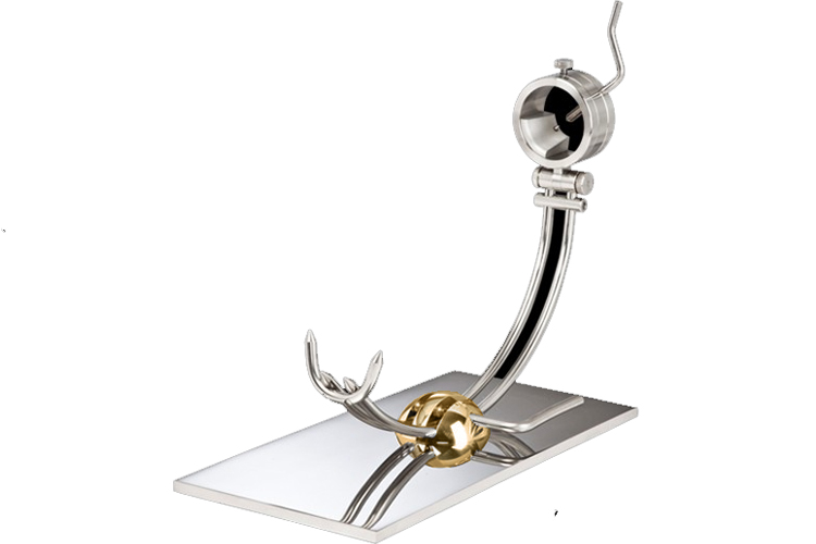 ステンレス鋼板にしっかりと固定されたアーム台。美しいゴールドのメッキが施されています。
