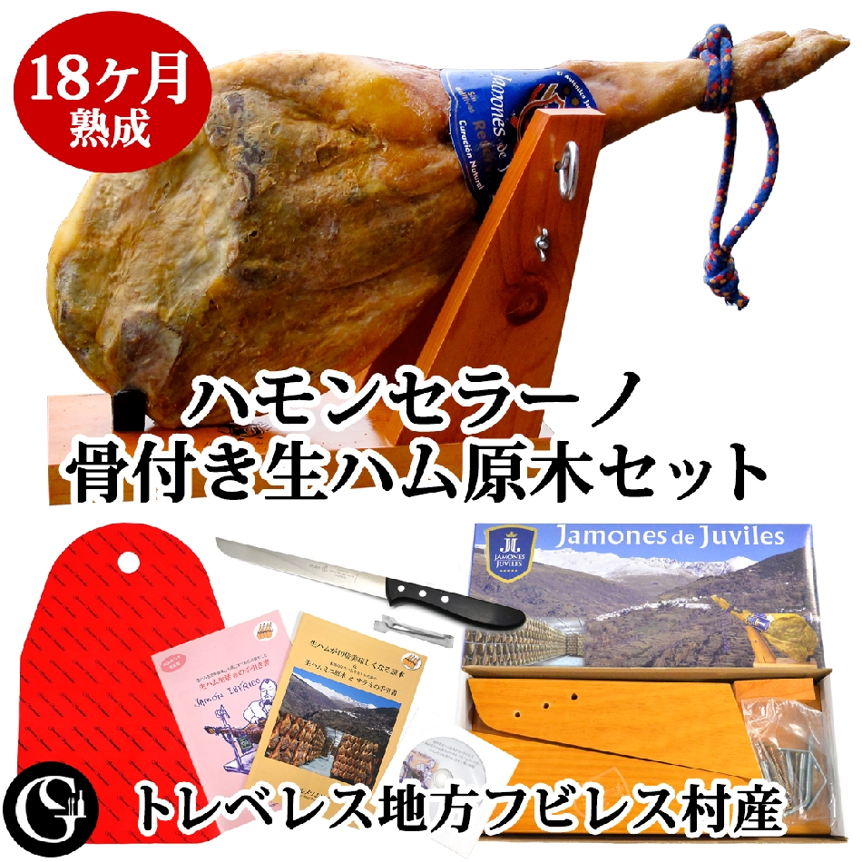 18ヶ月熟成ハモンセラーノ骨付生ハム原木【レセルバ 後ろ脚の無添加生ハム トレベレス地方フビレス村産】 |