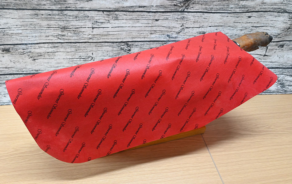 よくあることですが生ハムをカットしますと、一般的にはその切り口をラップでくるんでしまいますが、ラップにより生ハムが蒸れてカビなどの原因になっていました。 生ハムの切り口は、あるていど通気性のよい布のようなもので覆うことをおすすめいたします。