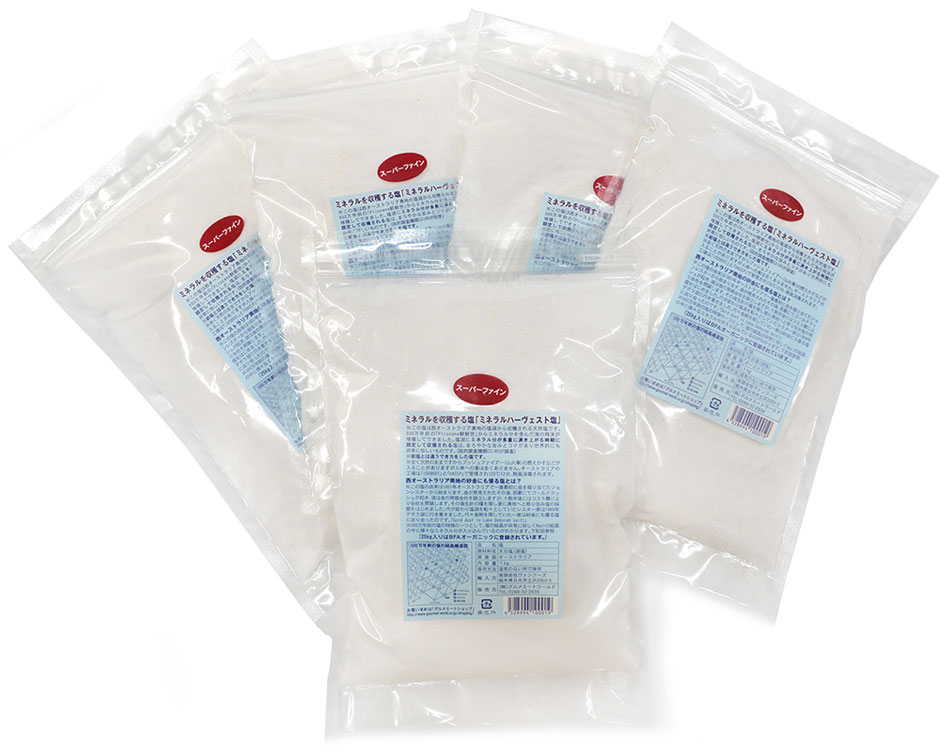 ミネラルハーヴェスト塩のスーパーファインは、粒子が細かいタイプですので、料理の用途によってお使い下さい。細かくすぐに浸透しますので、調理の直前に塩味をつけたり、テーブル塩としても最適です。さらさらしていますので、素材全体的にまんべんなく振りかけるときにも確認もしやすく適しています。
