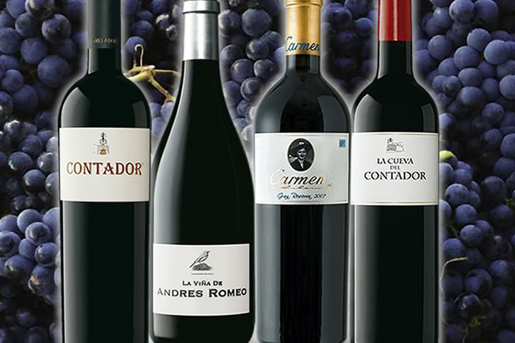 左からコンタドール、ラ・ヴィーニャ・アンドレス・ロメオ、カルメン・グランレセルバ、ラ・クエバ・デル・コンタドールの4ワイン4本です。