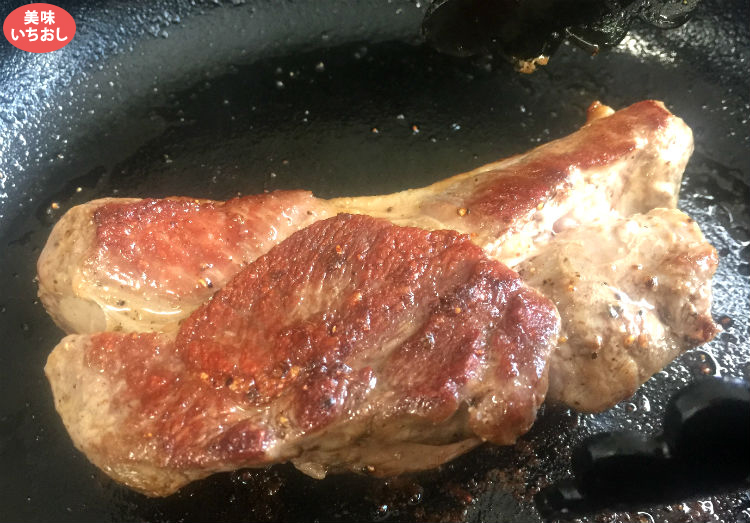 | 厚みのあるステーキはスキレットなど肉厚のフライパンでじっくり焼くのがおすすめです。 | |