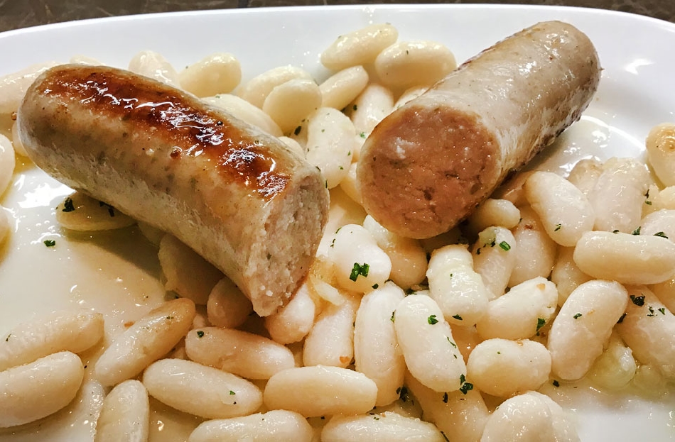 ほっくりトロリとした塩味の煮豆を付け合わせに♪焼きブティファラと白いんげん豆の一皿