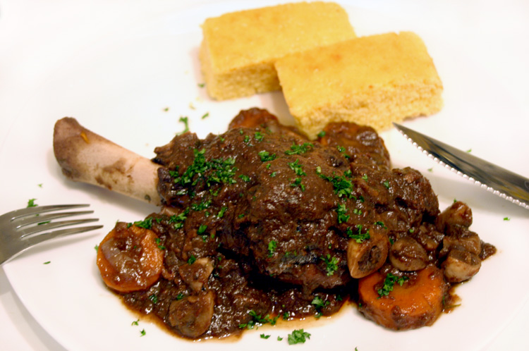 ナイフがいらないくらい柔らかく煮たお肉はホロリと骨から外れ、脂肪が少ないお肉は見た目よりさっぱりとしていて、コクのある赤ワインソースとのバランスが良いんです。 |