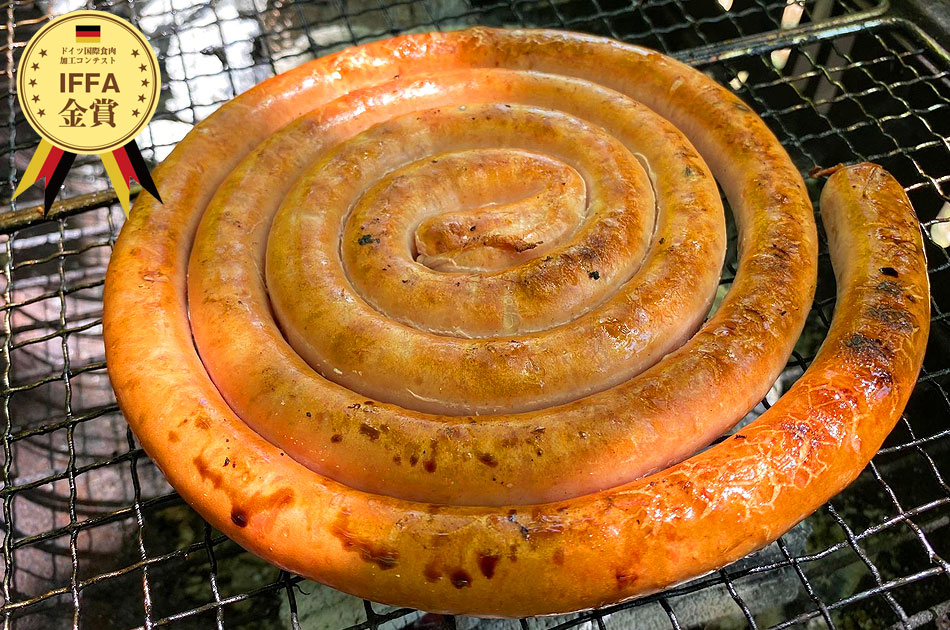 肉本来の食感と美味しさを追求した粗挽きタイプのスモークウインナーです。調味料は出来るだけ控えて、肉本来がもっている旨味とコクを引き出だす製法でつくりました。ウィスキーを30年以上熟成させたオーク樽をチップにしたものを独自の配合でブレンドし燻煙をかけています。 薫り高く甘みを感じる香りがさらに「あらびきウインナー」の旨みを引き出します。 TBSテレビ『バナナマンの早起きせっかくグルメ』でめちゃめちゃ旨い!美味しい!と紹介された「あらびきウインナー」をバーベキューにも大好評のぐるぐるソーセージにしました!