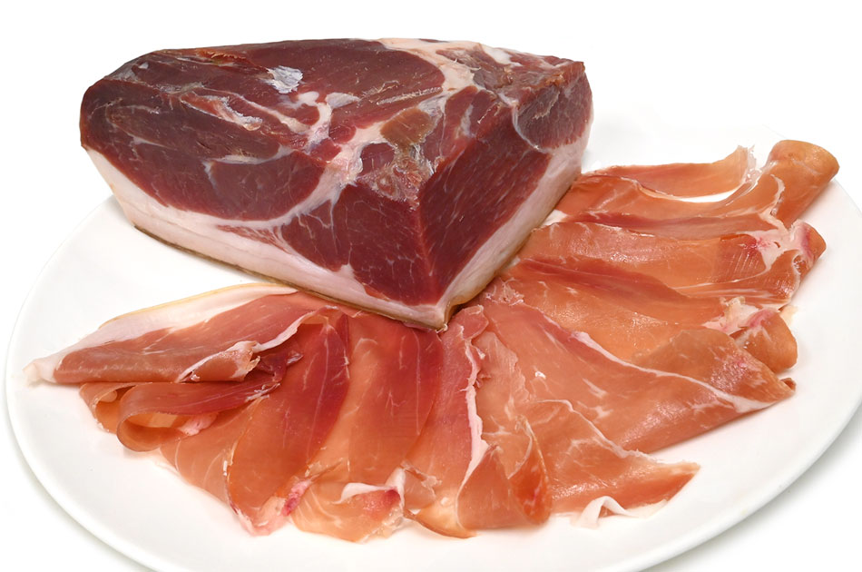 生ハムの白い結晶『チロシン』について 生ハムの表面に、白い粉のような固まりがついていることがあります。『チロシン』といい、旨み成分のアミノ酸が結晶になったものです。旨み成分ですから食べても問題ありませんが、 噛んだ時に「じゃりっ」と感じることがあります。その食感が苦手な方は取り除いて食べることをおすすめします。 生ハムは熟成することによって、普通の豚肉の数倍~数十倍にアミノ酸が増えます。このチロシンがみられるということは、美味しい生ハムの証明ともいえます!