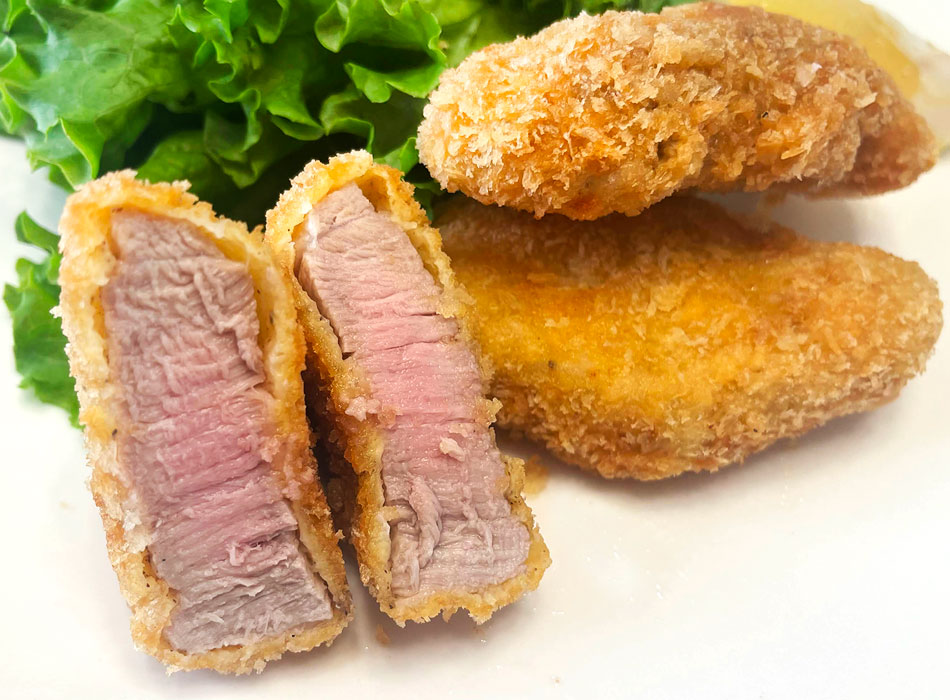 日光HIMITSUひみつ豚のヒレ肉は色々な料理に使えるばかりか、地元の飲食店などの引き合いが多く希少部位となっています。 ヒレカツはもとより、ヒレ肉の柔らかステーキ、ヒレ肉のピカタ、ヒレ肉の照り焼き、オニオンソテー、肉厚ポークチャップ、ヒレ肉の焼豚、ヒレ肉の赤ワイン煮、ヒレ肉の包み焼き、ヒレ肉のベーコン巻きステーキなど、様々なお料理に対応します。
