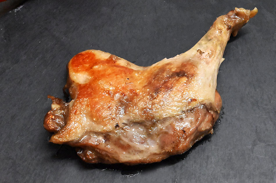 表面をパリッと焼いてお召し上がり下さい。風味の良いコンフィがお召し上がれます。