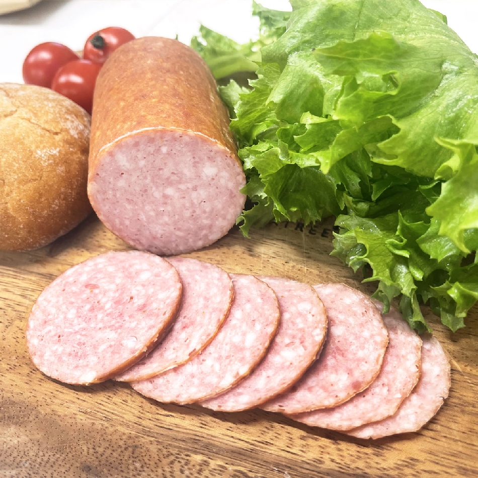 解凍してスライスするだけでお召仕上りいただけます。上品な味わいのソフトサラミです。