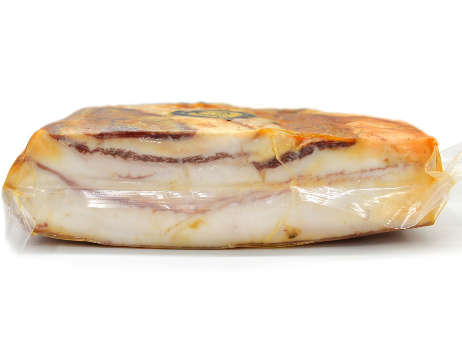 このパンセタはほとんど脂の製品ですので、ベーコンの感覚ではなく、脂を料理に追加する!脂を食べる(そのまま食べてもほんと美味しいです♪)という感覚で使ってもらいたい高級加工品です。