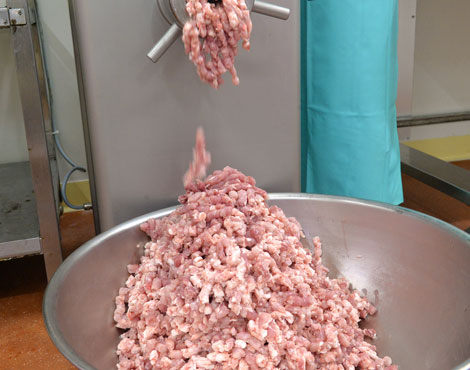 ![]() 美味いソーセージの第一歩は肉の吟味と肉の下ごしらえから。肉は部位によって味も性質も違います。ソーセージとしての旨味を引き出す為に各部位を丁寧にスジ挽きし練り合わせて熟成することで深い味わいを引き出します。 |