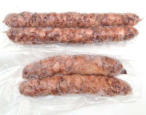 1パック約190g(2本入)です。冷凍でのお届けとなります。天然のケーシングを使用し、重量で製造するため長さにばらつきがございます。