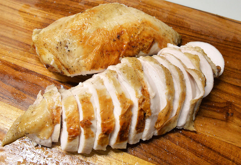 ![]() 厚みのある胸肉は柔らかくジューシーです。 |