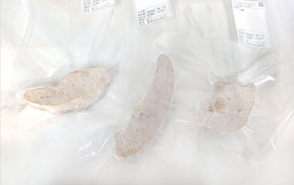 フォアグラオアは鴨のフォアグラに比べ、融点が高く、味も濃厚です。 ソテーの際には小麦粉をまぶし中まで温かくなるよう焼いてください。カリッと焼けます。