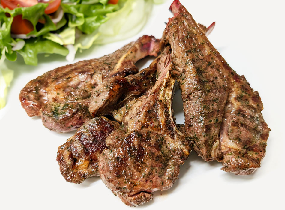 ラムショルダーラックは、ラムの骨付き肩ロースとも呼ばれ、ラムの肩ロースの肋骨4本目でカットしたものです。