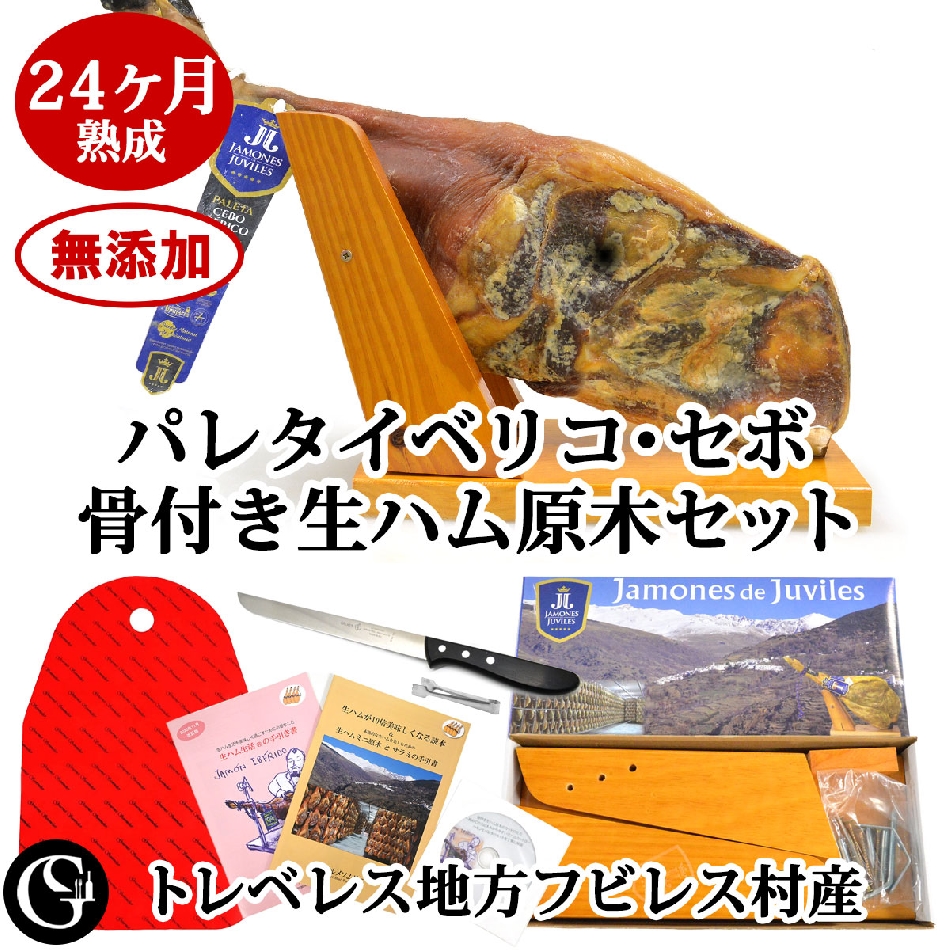 新生活応援(ピコス&生ハムカバー付)★《5~5.5kg》24ヶ月熟成パレタ・イベリコ・セボ骨付き生ハム原木【前脚 イベリコ豚 無添加 トレベレス地方 フビレス村産】旨味が濃く熟成感がありながらピュアな味わい! |