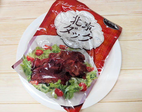 ![]() 北京ダックは冷蔵庫や流水で解凍後、袋に切れ目を入れて皿にのせ、500Wで2~3分温めます。 |