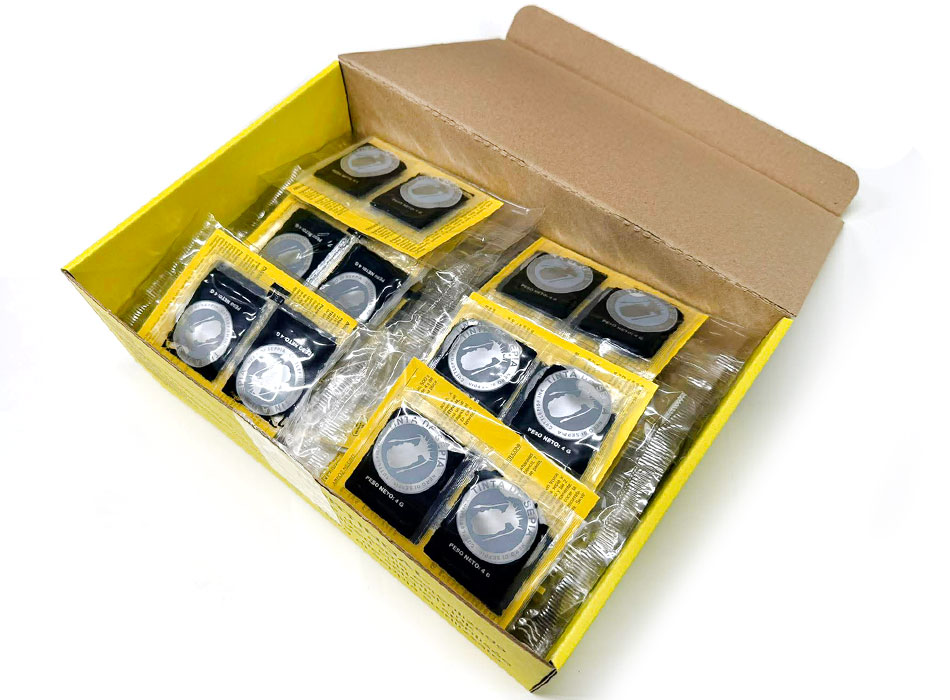 ![]() ●1袋に4gのイカスミが4パック入っています。外袋を開封後は乾燥しやすいので、残ったイカスミの小袋はラップでしっかり包んで冷蔵又は冷凍で保管ください。 |