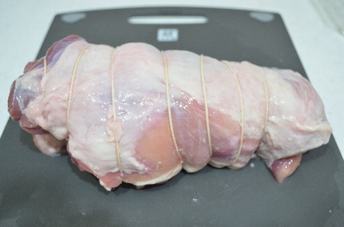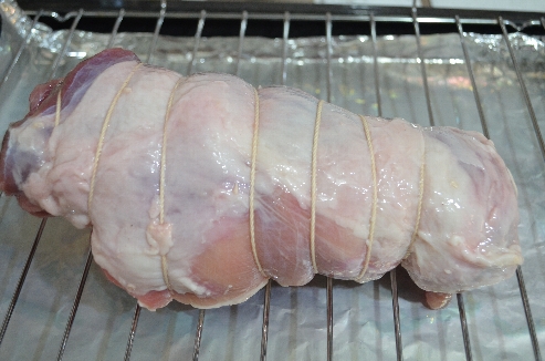 2..塩麴をとり、平にして巻き込みタコ糸で形を整えます。