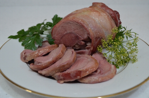 3.120度のオーブンで1時間火を通し、火を止め15分オーブンの中に留め、切り分けてイタリアンパセリとお皿の盛り付けます。         | ||