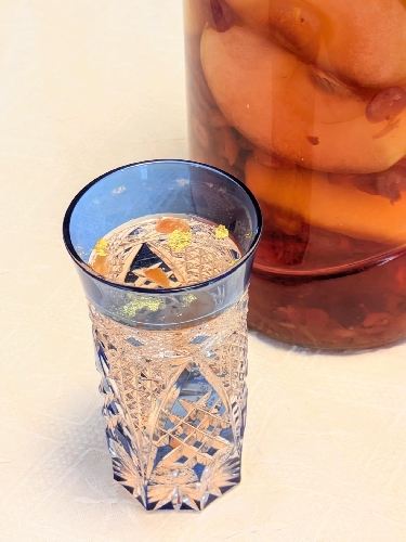 お正月に色々な場面で使わせていただきました。 ①お屠蘇を飾ります 縁起の良いお屠蘇に、縁起の良さそうな金箔を飾って、パワーアップです。 ②黒豆を飾ります 食用金箔の定番?的な使い方というイメージで、やってみたかったんです。 ③秋に作ったリンゴ酒でカクテルにして ホワイトリカーで作った自家製のリンゴ酒です。 梅の季節に作る梅酒はポピュラーですが、梅以外の果物を漬けても楽しいです。 簡単なので、作り方も書いても良いかしら…? 【材料】 ホワイトリカー(1リットル) リンゴ(皮ごと4等分にカット)(普通サイズ2個) ドライクランベリー(熱湯をかけて、オイルコーティングを落としておく)(50gくらい) 氷砂糖(125gくらい、お好みの量を)