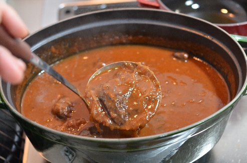 3.自分の好みのお肉の柔らかさに1~1時間半煮込んで、お肉を取り出します。