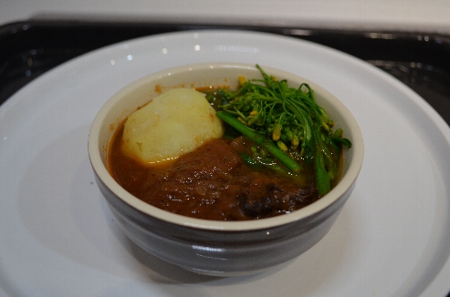 5.お肉を鍋に戻し、野菜と一緒に盛り付けて出来上がりです。