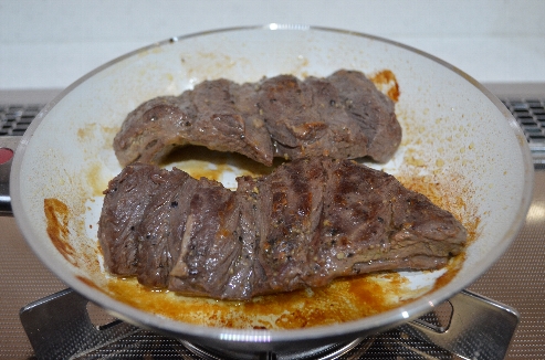 1.解凍したお肉に塩胡椒をかけて、ビニール袋に入れて密封し、1週間冷蔵庫でねかせます。