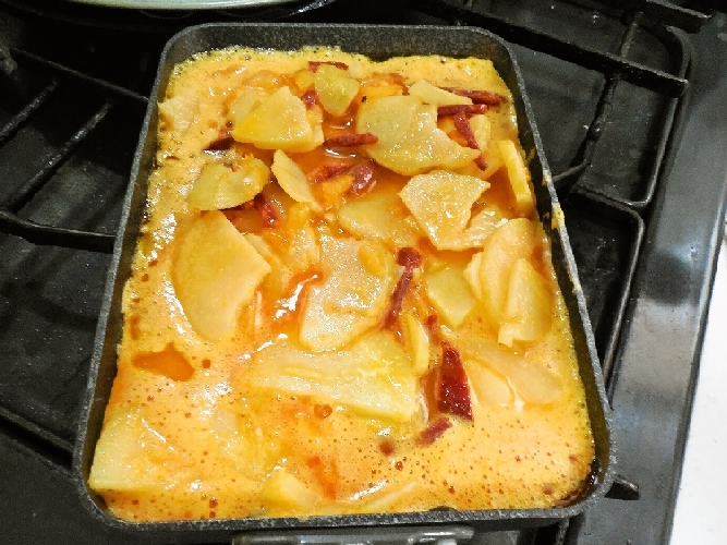 (これは最長時間で芯がうっすら赤いのが好みの方は10分から) これをすぐに氷水で冷やしてから、冷蔵庫に入れて固まれば出来上がりです。 (本当は3日後が美味しいというので、一番に作りました)