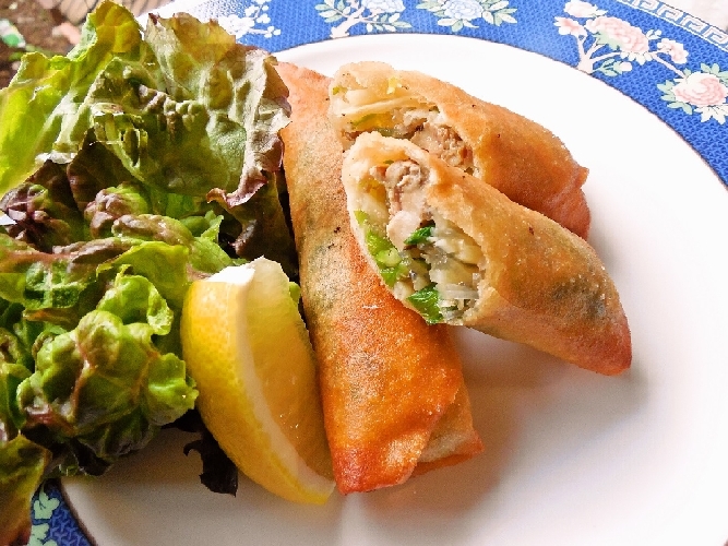 こうすると、中身はしっかりで漏れずに、最後の外側だけがふわっとなってパリパリに揚がります。 横浜中華街にお勤めの方に聞いたお勧めのテクニックです! 揚げるのは、もうすべて火を通してあるのでお好みの色が出れば出来上がりです!
