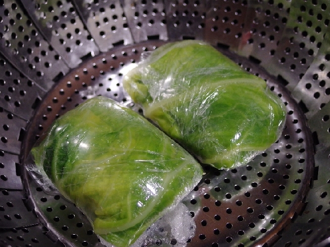 仕上げ: フォアグラが蒸しあがったら皿に盛り付け、上にスライスしたトリュフを載せてからソースをかける。 感想: 低温調理を心掛けたので、出来上がったフォアグラは非常にまったりとして香りがよく仕上がりました。 いくら融点が高めとはいえ、強火で火を通せば繊細な香りが消えてしまいますから、キャベツの葉で包んだ上で、ゆっくりと火入れしたのは正解だったと思います。 鮮やかな緑色のキャベツをカットすれば、中から美しいベージュピンクのフォアグラが見えます。流れ出す一歩手前のフルフルとした状態で熱が通っており、それを一口大に切り分けたうえでトリュフを一切れ載せて口に運べば、まず春キャベツの甘味と香り、次にトリュフの香りが広がり、咀嚼するごとに口の中でフォアグラがまったりと溶けて全体に馴染んでいきます。フォアグラは蒸してあるので、ふわりとした食感です。非常に軽く、あっさりとしていながらもフォアグラの旨味が堪能できる1品でした。 この商品は、1センチ強のスライスという使い勝手の良い分量のフォアグラが2枚パックになっているので、さっと思い立って料理したいときには便利です。 ![]() 新鮮な春キャベツ ![]() ラップに包んで蒸す ![]() いただきます  | ||