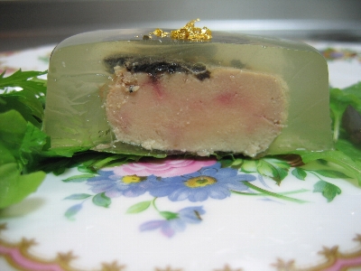 蒸し焼きにしたフォアグラをゼリーにして・・・・・・。