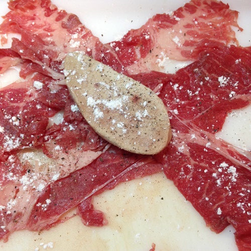 ・薄切り牛肉 フォアグラ一枚に対して3~4枚