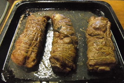 ① 冷蔵庫の中でしぜん解凍したあと、サラダオイルをしっかり肉に揉み込む。 こうすると、肉が柔らかくなる。 ② 塩コショウをして、タコ糸で形を整え、冷蔵庫に2~3時間寝かせる。 あればローズマリーの葉っぱもパラパラと振る。 ③ フライパンで全面に焼き色をつけ、低めの160℃で15分焼く。 ④ アルミホイルにくるんでしばらく保温し、焼き汁を落ち着かせる。 ⑤さめたら薄くスライスして、温野菜と焼き汁にお醤油を足して作ったグレービーソースを添えて、 召し上がれ。ロゼで柔らかく癖もなく美味しいローストラムの完成です。 ![]() ![]() | ||
