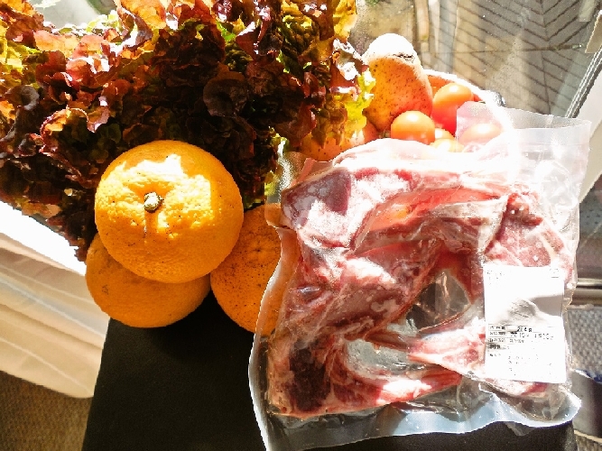 材料2~3人前ラムチョップ5本(約60gX5本)パック一袋 カボス大2個 リーフ・レタス10枚ほど、水菜少々、飾用の人参 バルサミコ酢2年~5年の若い物大さじ10ほど(煮詰めて酸味を飛ばすため高価なものでなくても良い) オリーブオイル、白ワイン、香り付け用のブランデー、塩コショウ適量 作り方今回は前に作ったロートビーフのように表面に焦げ目を入れて、あとはジップロックで湯煎にかけました。 (火の通り具合が絶妙になるのと、美味しい肉汁がたくさん取れるので) フライパンにオリーブオイルを敷いて、塩コショウして白ワインで1時間ほどマリネしたラムチョップを 強火でソテーします。本当に表裏面に焦げ目をつけるだけです。 ソテーしたら粗熱を取ってドリップをソース用に取り分けて、ジップロックに入れて88.8度に熱した鍋で 4~5分湯煎にかけます。(たまに取り出して様子を見ました) バルサミコ酢は香り付け用のブランデーと袋のドリップをすべて入れて中火で酸味を飛ばしながら お肉を湯煎している間に煮詰めます。