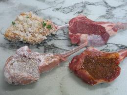 いつもは 『香草パン粉焼き』 にしていただくラムチョップを 『カレー風味のパン粉焼き』 にしてみました!! プレゼントでいただいたラム フレンチラックチョップとハーブ&カリー(ステーキスパイス)にチーズ(グランパジャーノ)をプラスしてカレー&チーズ味にしていただきました。