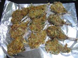 形成済みなので解凍→下味つけ(ハーブ&カリー)→パン粉→オーブン焼きと、オーブンで焼いている時間を除けば、手間と時間は意外とかからなく、下準備しておけばあとはオーブンが料理してくれる楽チン料理です。