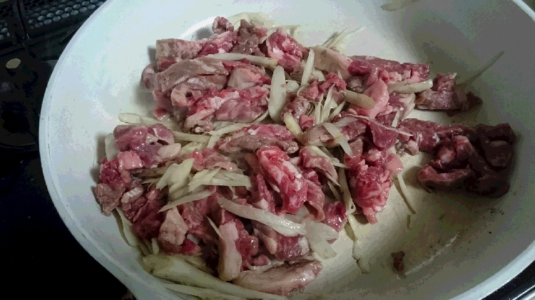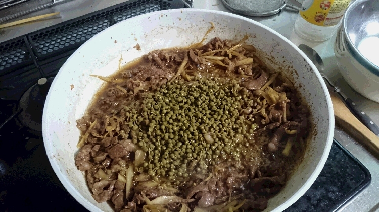 リブロースの切落しを厚めに細切りにして、生姜と山椒と合わせた「牛のしぐれ煮」を作る。 1. 初めに牛蒡を笹がきにして油で炒める。 2. 細切りにしたリブロースの切落しを加え、炒めていく。 3. 生姜の千切りを加えなおも炒める。 4. 砂糖、日本酒、味醂、醤油を加え、煮込んでいく。 5. 汁が無くなる前に塩抜きした山椒を大量に加え、出来上がり。 濃い味付けにすればご飯に合うし、やや薄味にすれば酒の肴に合う。 ![]() ![]() ![]() | ||